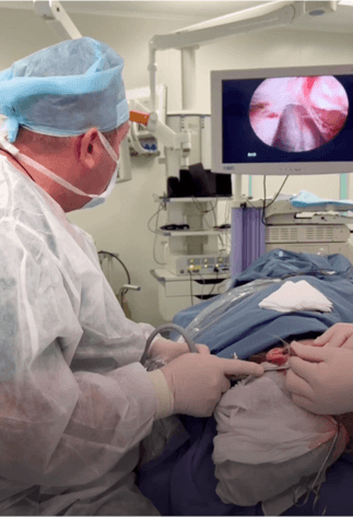 Эндоскоп — тонкий оптический инструмент с миниатюрной насадкой диаметром 4 мм, который позволяет выполнять вмешательства через минимальные разрезы. Такая техника снижает травматичность операции, сокращает кровопотерю и ускоряет восстановительный период пациента.