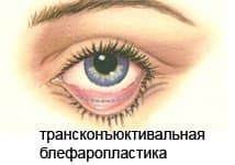 - Трансконъюктивальная блефаропластика — лифтинг век, при котором разрезы делаются внутри нижнего века, через конъюнктиву.