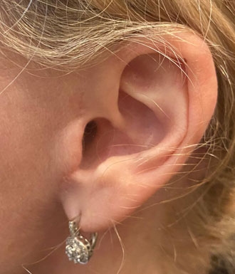 Минимальные внешние следы: рубцы скрыты в линии роста волос и за ухом.